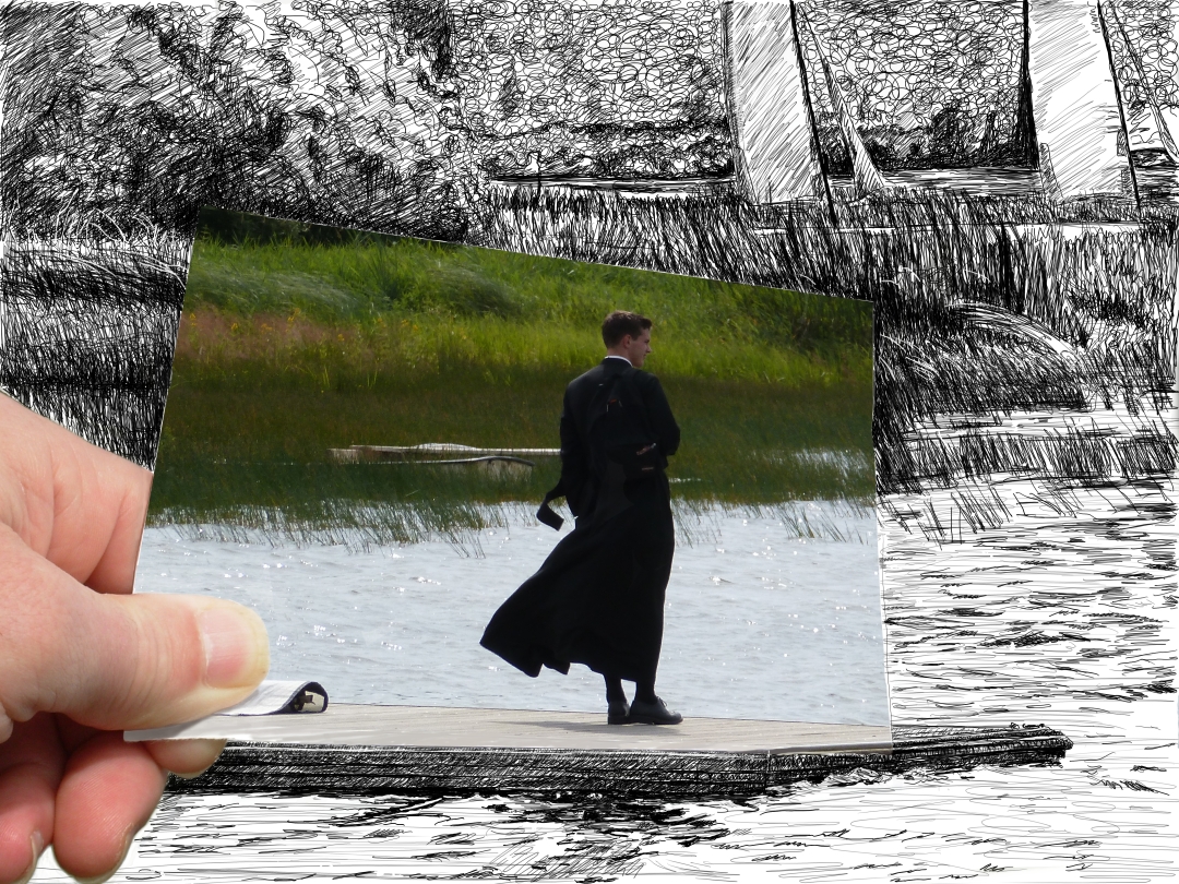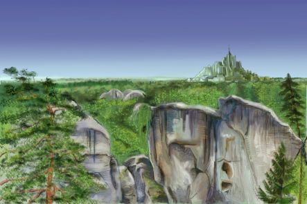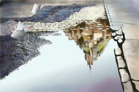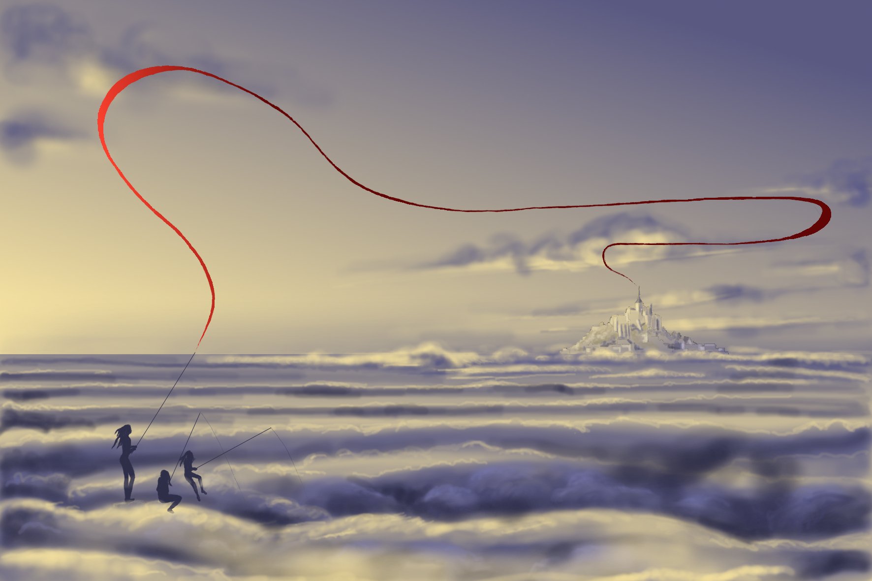 Déclinaison de vision du Mont Saint Michel, avec le logiciel de dessin Gimp sur ma tablette graphique, ce n’est que du dessin, pas de photos de copié, collé.